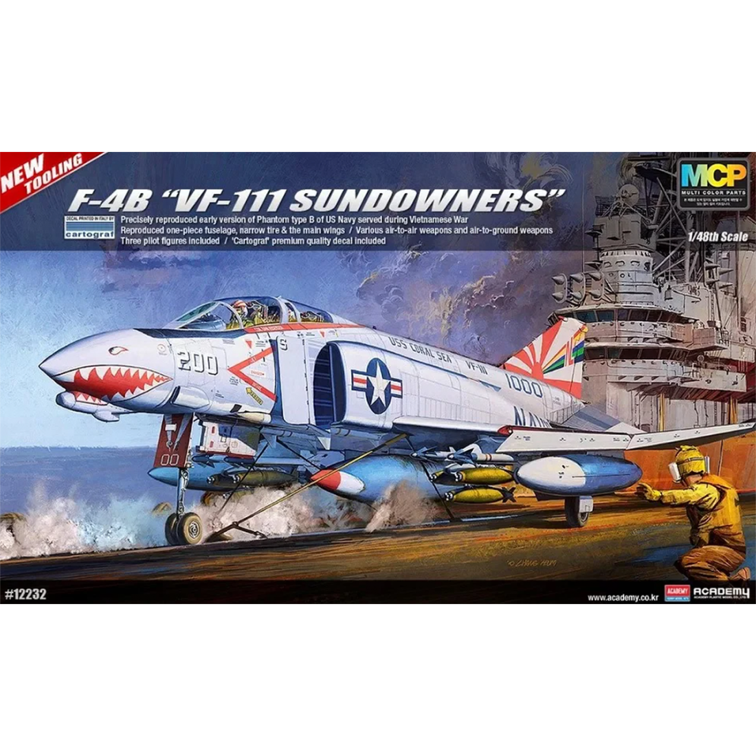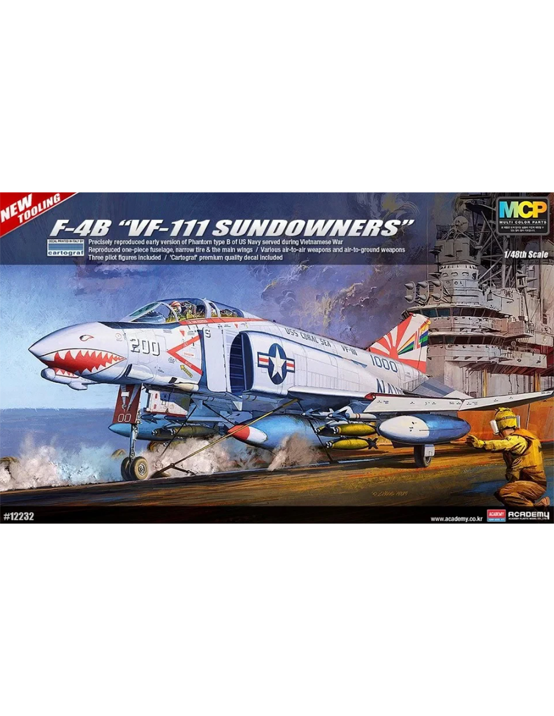 Dieser Bausatz im Maßstab 1:48 stellt den F-4B VF-111 “Sundowners” dar, eine Phantom II-Variante des US Navy-Geschwaders VF-111 „Sundowners“.