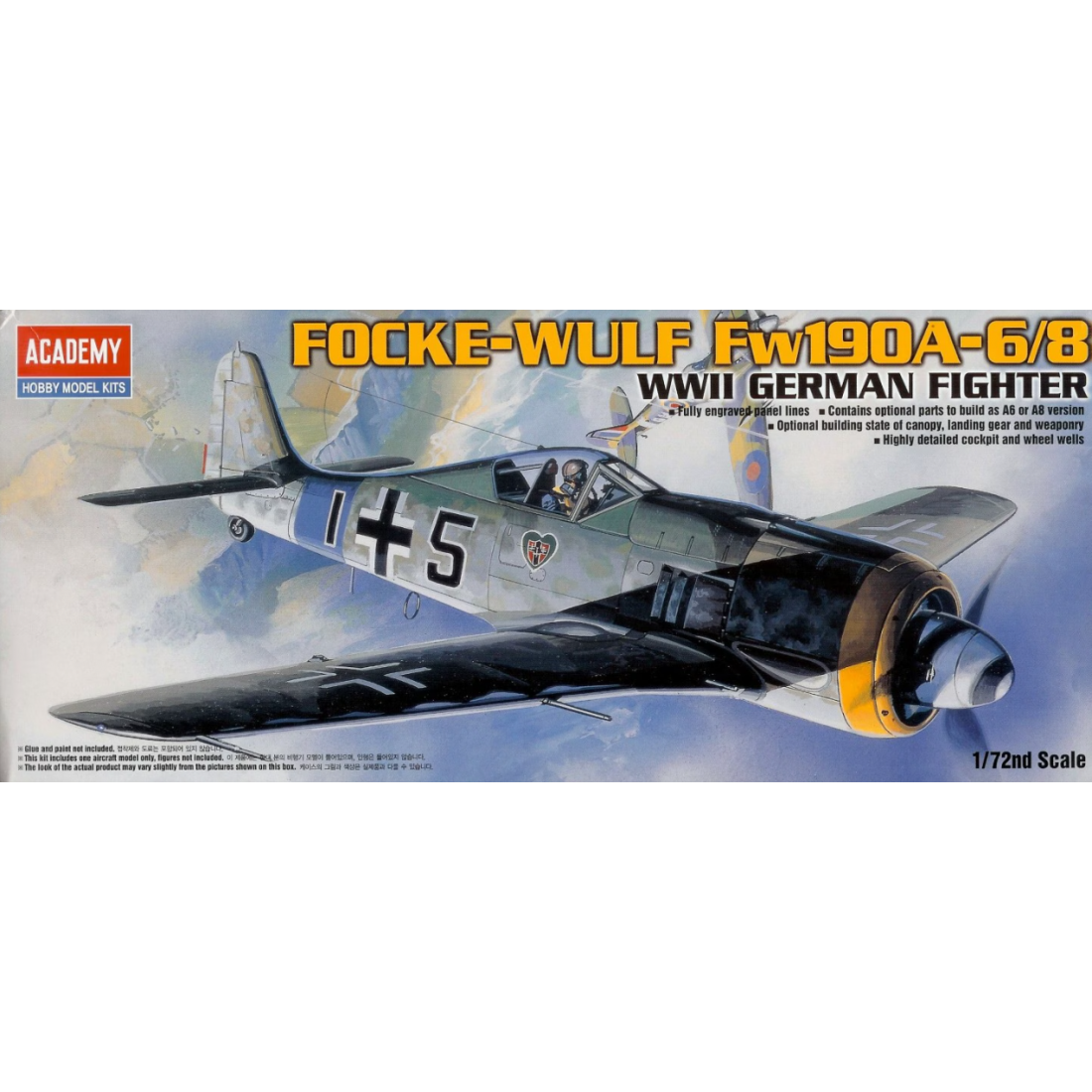 Dieser Bausatz im Maßstab 1:72 zeigt den beeindruckenden Focke-Wulf Fw 190A-6/8, eines der effektivsten und vielseitigsten Jagdflugzeuge der Luftwaffe im Zweiten Weltkrieg, bekannt für seine Feuerkraft und Robustheit.
