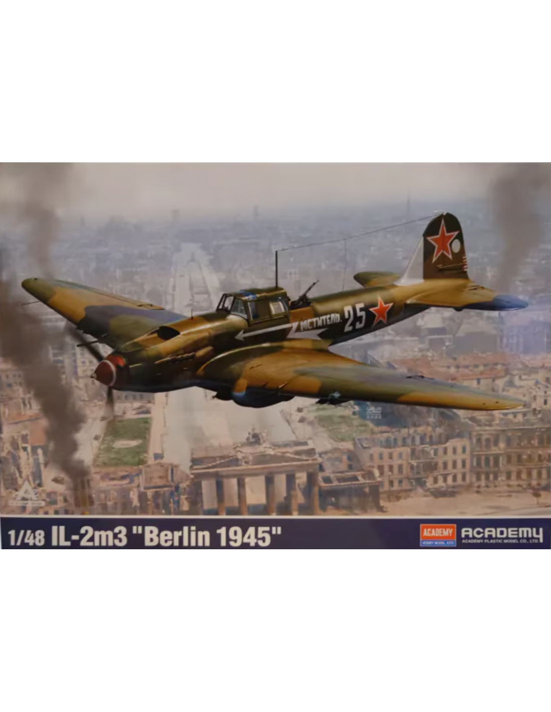 Dieser Bausatz im Maßstab 1:48 zeigt den berühmten Ilyushin IL-2M3 Sturmovik, das legendäre sowjetische Erdkampfflugzeug, eingesetzt in der Schlacht um Berlin 1945 – Symbol des Sieges der Roten Armee.