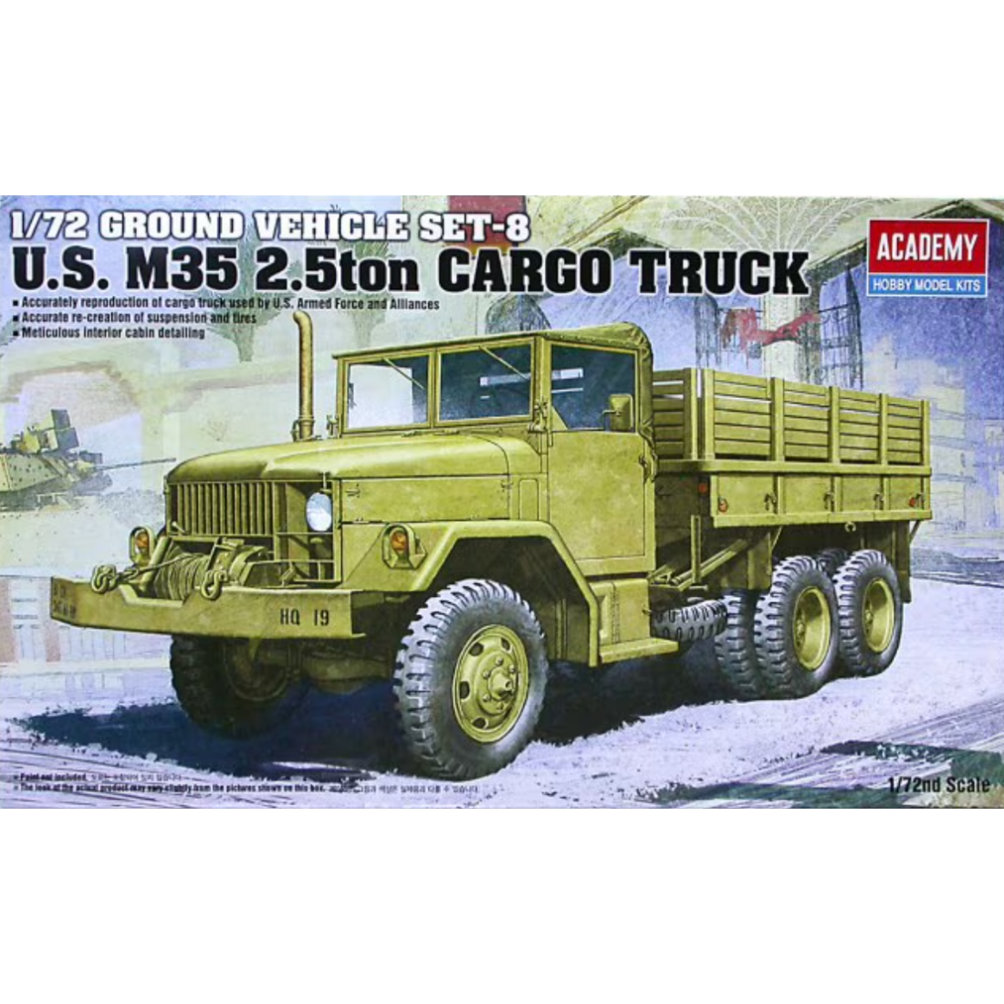 Dieser Bausatz im Maßstab 1:72 zeigt den M35 2½ Ton Cargo Truck, den bekannten mittelschweren taktischen LKW der U.S. Army, im Einsatz von den 1950er bis 1980er Jahren.