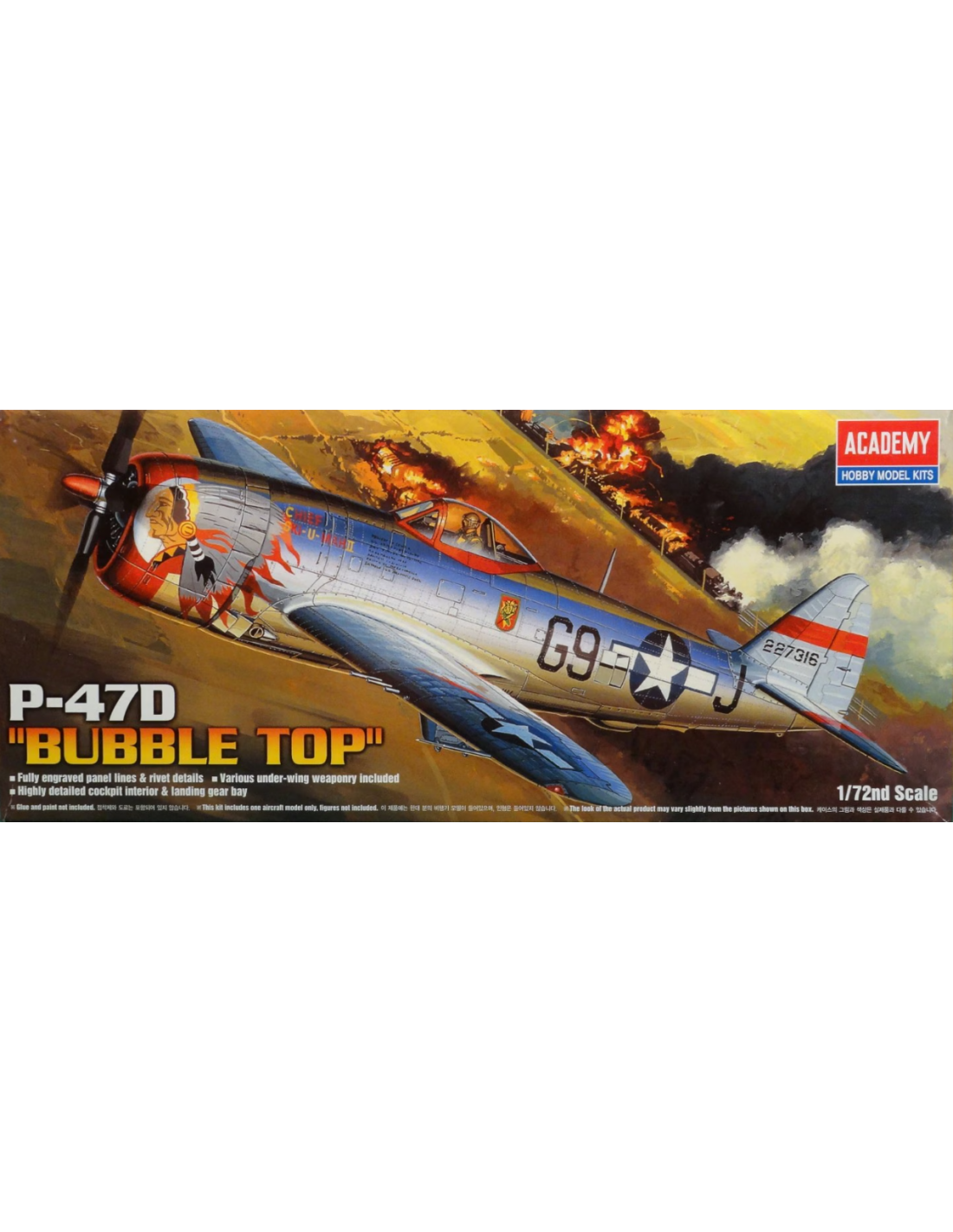 Der Bausatz verfügt über fein gravierte Paneellinien, ein detailliertes Cockpit, bewegliche Klappen, realistisches Fahrwerk und die markante klare “Bubble-Top”-Haube.