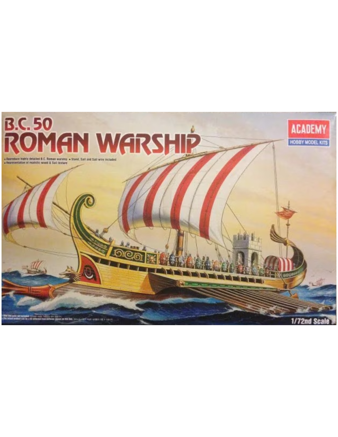 Dieser Bausatz im Maßstab 1:72 zeigt ein römisches Kriegsschiff aus etwa 50 v. Chr., zur Zeit der größten maritimen Macht Roms.