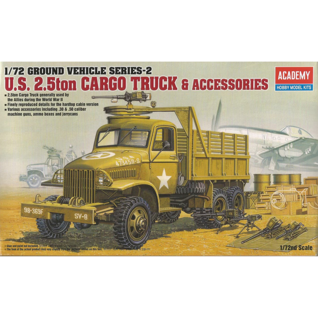 Dieser Bausatz im Maßstab 1:72 zeigt den klassischen U.S. Cargo Truck mit einer Vielzahl von Zubehörteilen, ideal für Versorgungs- und Logistikdioramen des U.S. Army im Zweiten Weltkrieg.