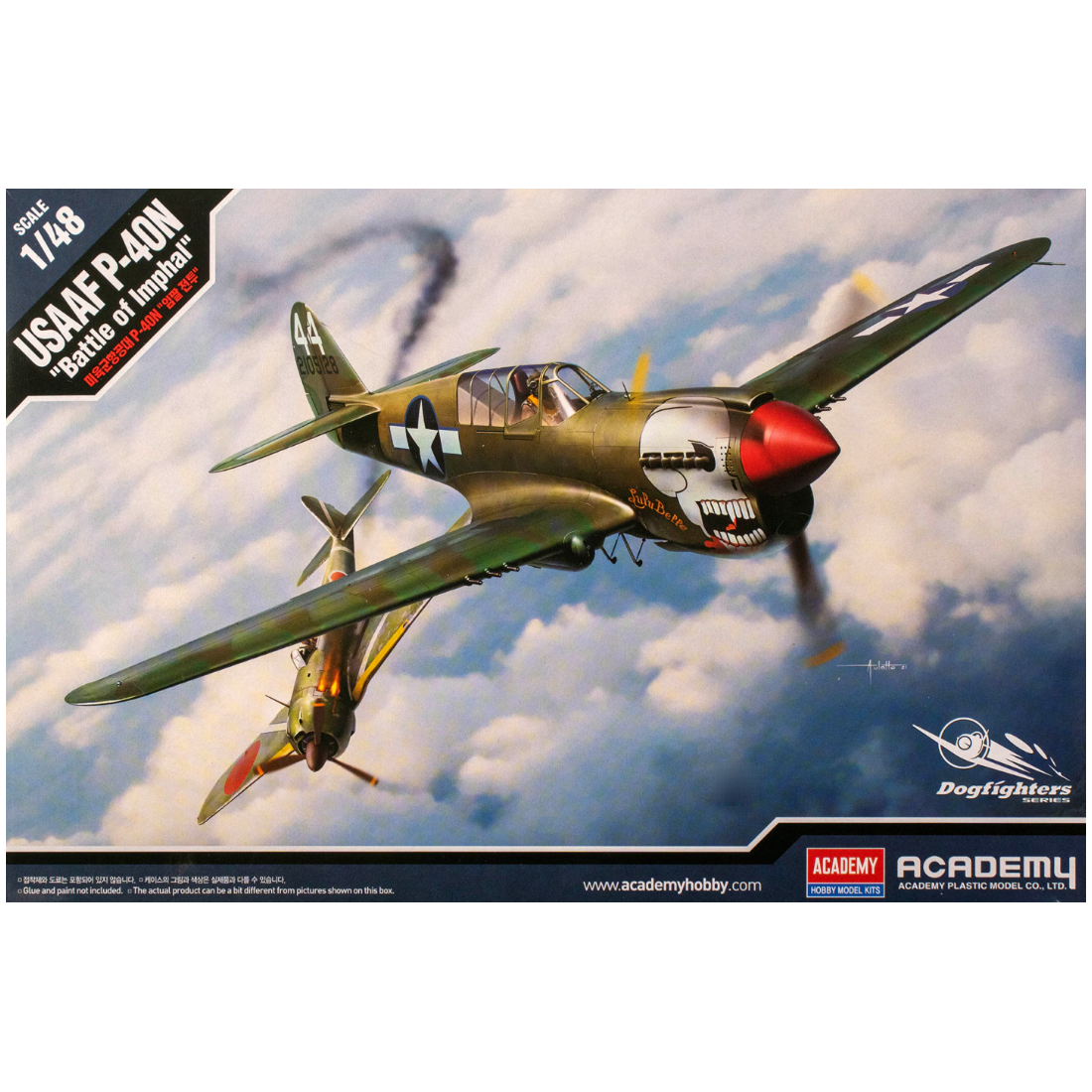 Dieser Bausatz im Maßstab 1:48 zeigt den berühmten Curtiss P-40N Warhawk, der in der Schlacht von Imphal (1944) eine entscheidende Rolle im Indien–Burma-Feldzug spielte.