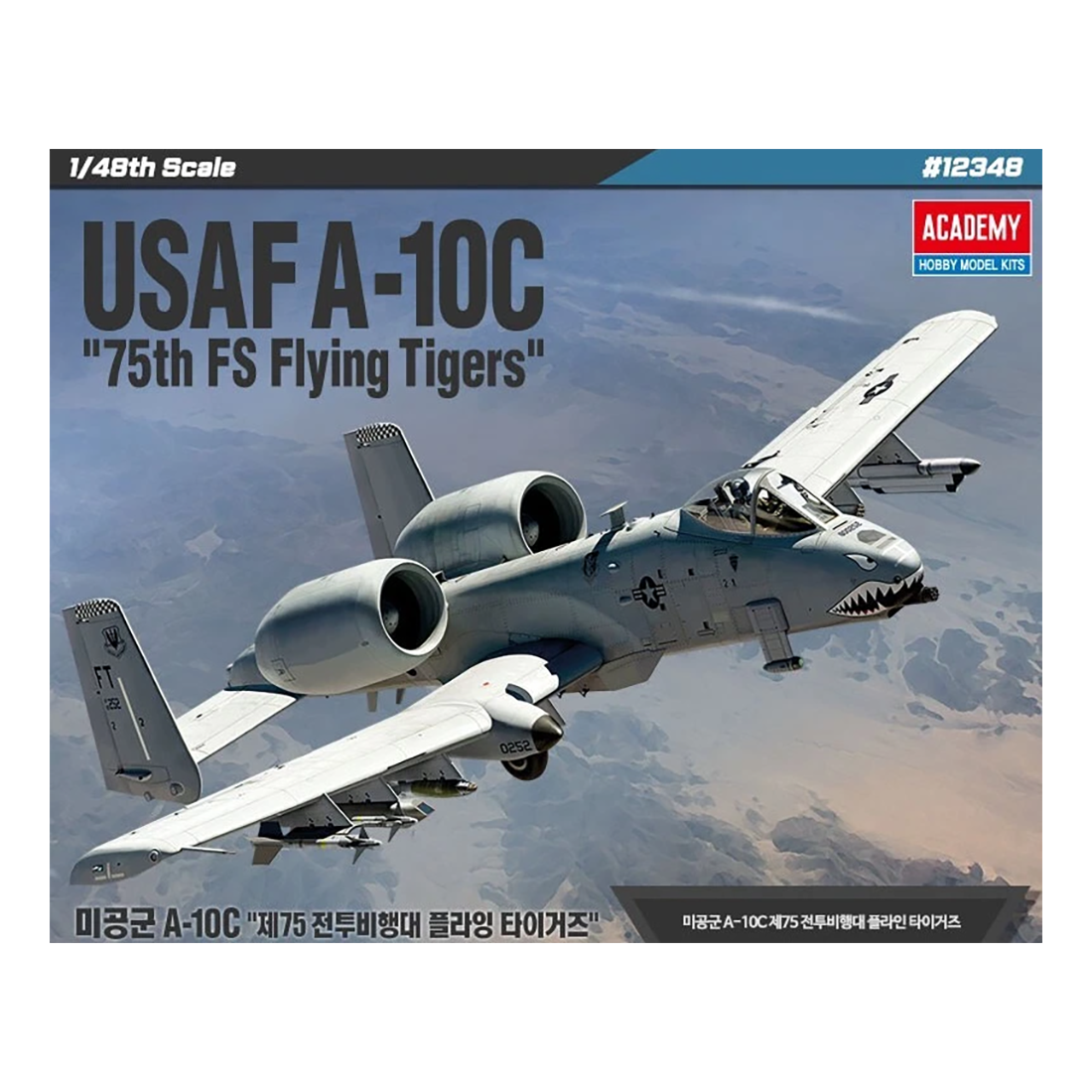 Dieser Bausatz im Maßstab 1:48 zeigt den berühmten Fairchild-Republic A-10C Thunderbolt II, bekannt als “Warthog”, hier in der spektakulären Sonderlackierung “Flying Tiger”, inspiriert von den Hai-Mäulern der WWII-Kampfflugzeuge.