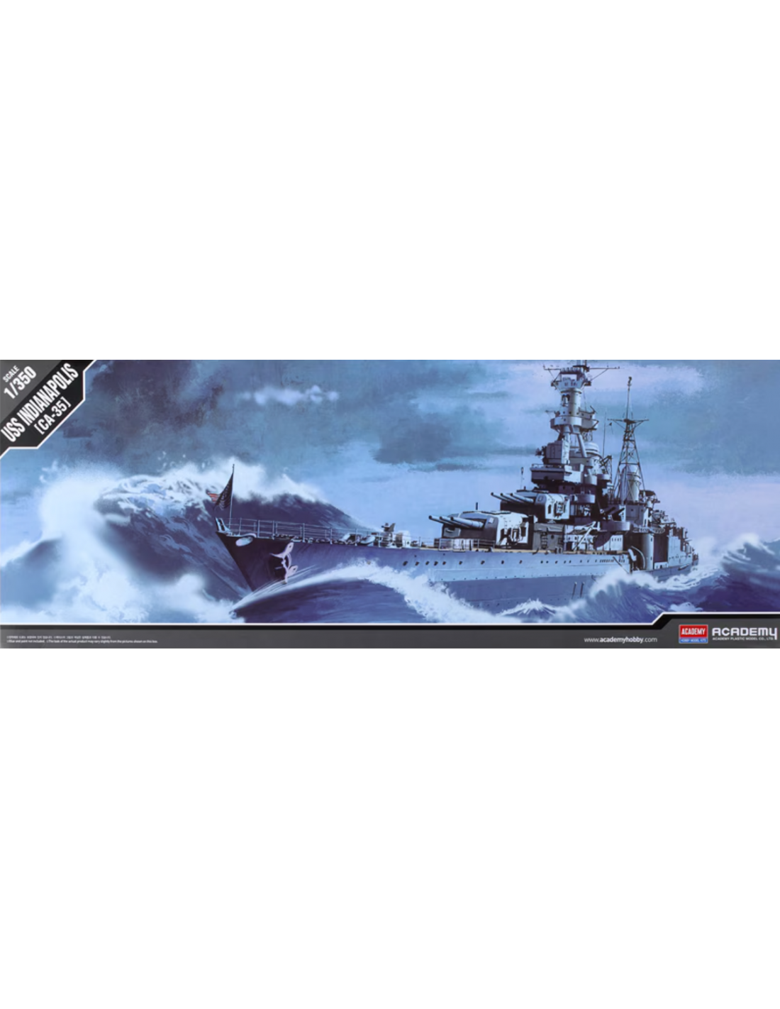 Dieser Bausatz im Maßstab 1:350 zeigt den USS Indianapolis (CA-35), einen der bekanntesten amerikanischen Schweren Kreuzer des Zweiten Weltkriegs.