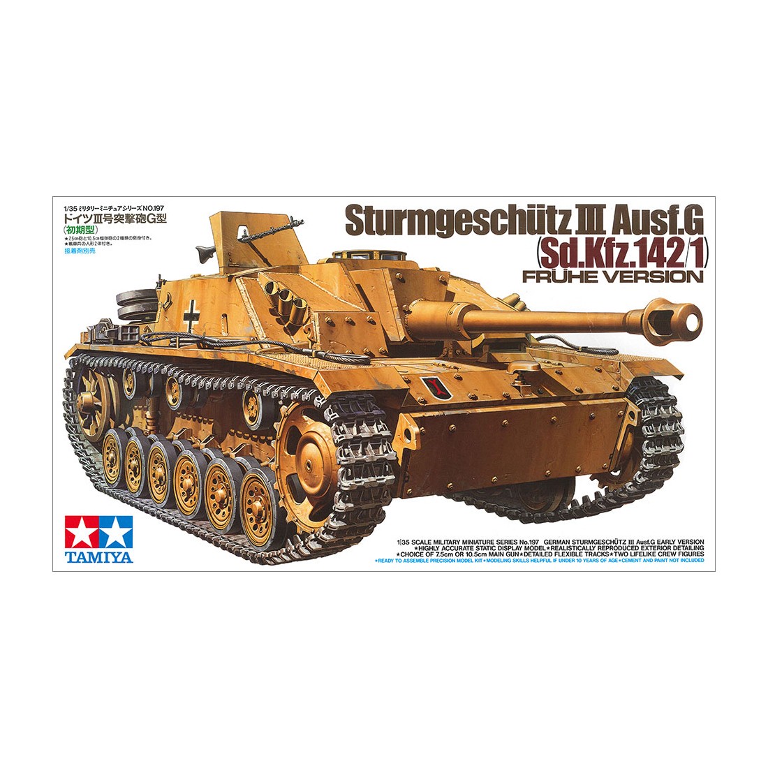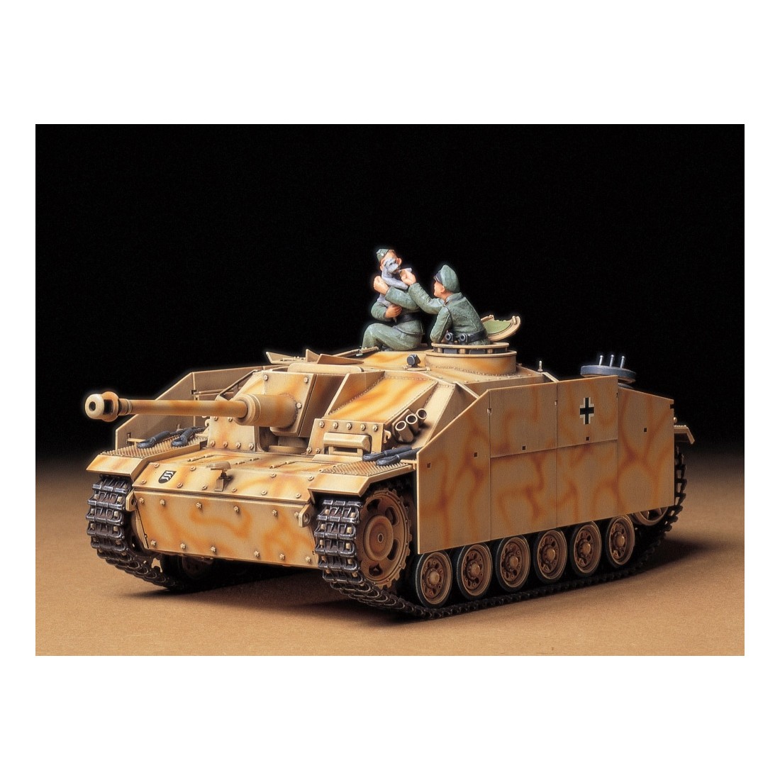 Das Sturmgeschütz III Ausf.G gehört zu den bekanntesten deutschen Sturmgeschützen des Zweiten Weltkriegs und wird von Tamiya im Maßstab 1:35 als Standmodell angeboten.