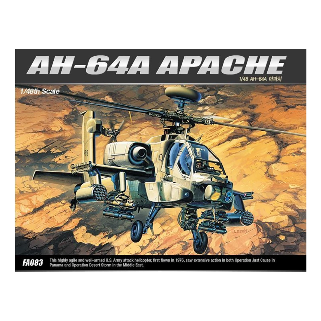 This 1:48 scale model depicts the legendary AH-64A Apache, one of the most recognizable attack helicopters ever built and a true symbol of modern air power.