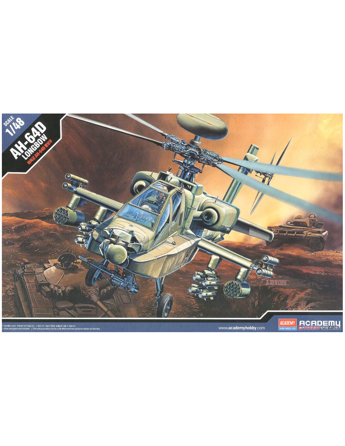 This 1:48 scale model depicts the AH-64D Longbow, an advanced evolution of the legendary Apache attack helicopter, serving with the U.S. Army and allied air forces worldwide.