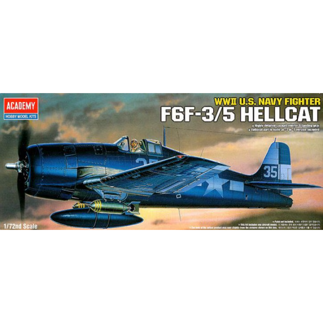 High-quality decals allow you to build either the F6F-3 or F6F-5 version, including VF-27 “Cat Mouth” and VF-12 markings in glossy Navy Blue finish.