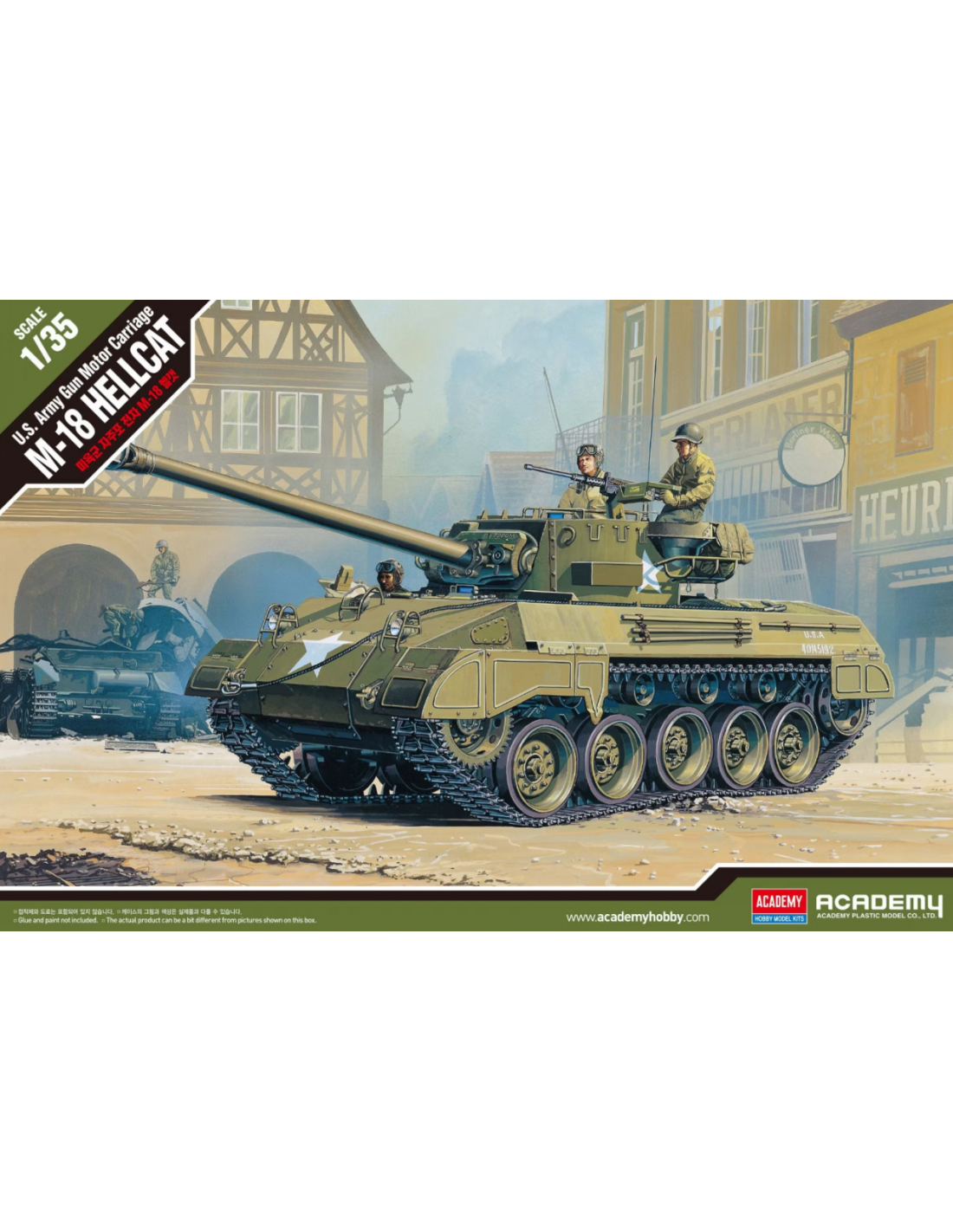 This 1:35 scale model depicts the legendary M18 Hellcat, the fastest U.S. tank destroyer of World War II, designed for speed, mobility, and firepower.