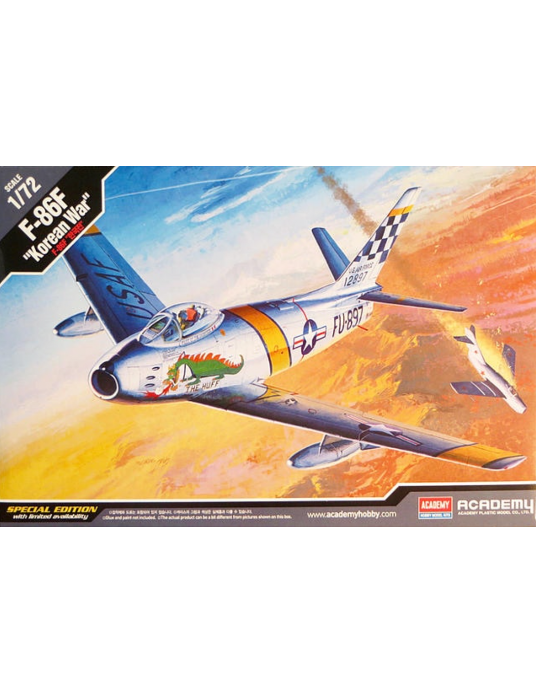 This 1:72 scale model represents the iconic North American F-86F Sabre, the jet fighter that became the symbol of the Korean War, dominating the skies against the Soviet-built MiG-15s.