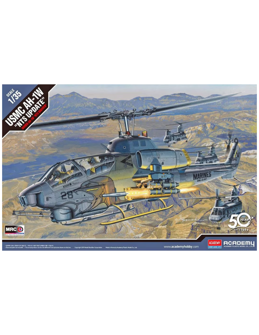 This 1:35 scale model reproduces the USMC AH-1W NTS Update, an attack helicopter operated by the United States Marine Corps. Equipped with the NTS (Night Targeting System), this version improves night-time combat effectiveness and weapon accuracy.