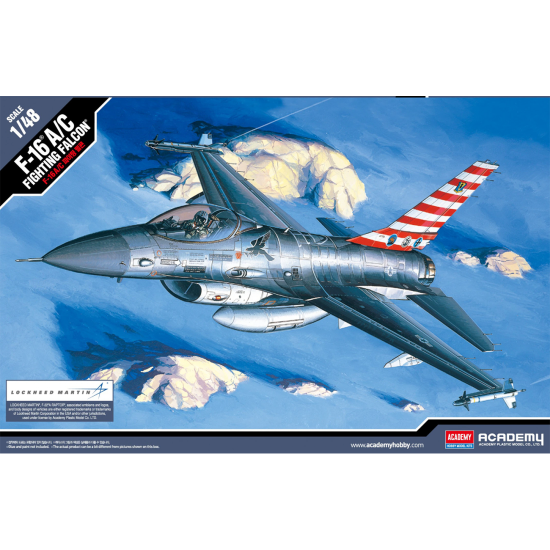 Este modelo a escala 1:48 representa el famoso F-16 A/C Fighting Falcon, uno de los cazas multifunción más utilizados en el mundo, operado por numerosas fuerzas aéreas.