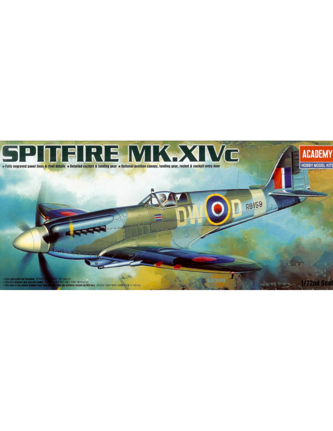 Este modelo a escala 1:72 reproduce el impresionante Supermarine Spitfire Mk XIVc, una de las versiones más potentes y refinadas del mítico caza británico de la Segunda Guerra Mundial.