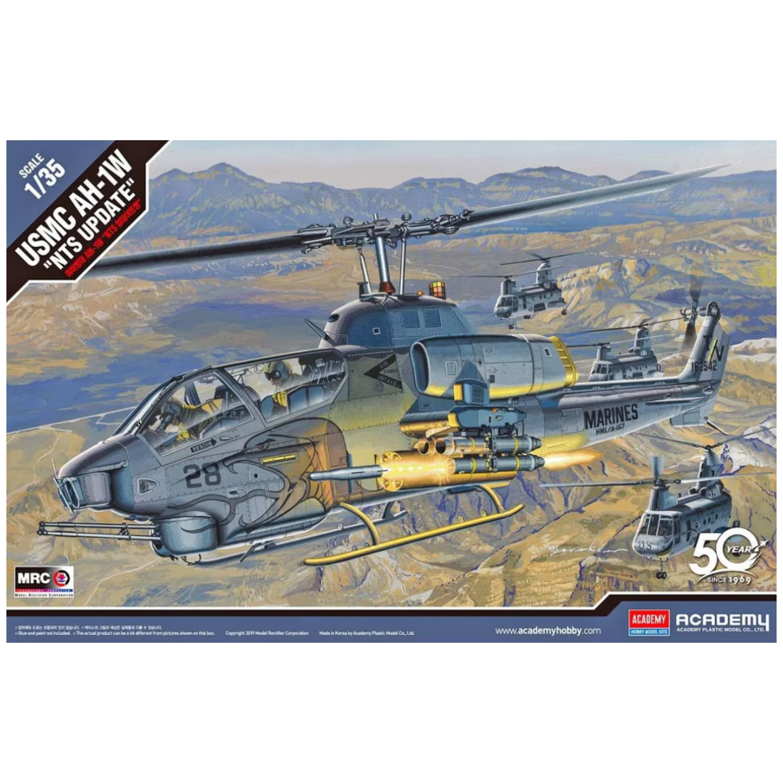 Este modelo a escala 1:35 reproduce el USMC AH-1W NTS Update, un helicóptero de ataque utilizado por el Cuerpo de Marines de EE. UU.. La versión incorpora el sistema NTS (Night Targeting System), que mejora la efectividad en misiones nocturnas y la precisión del armamento.