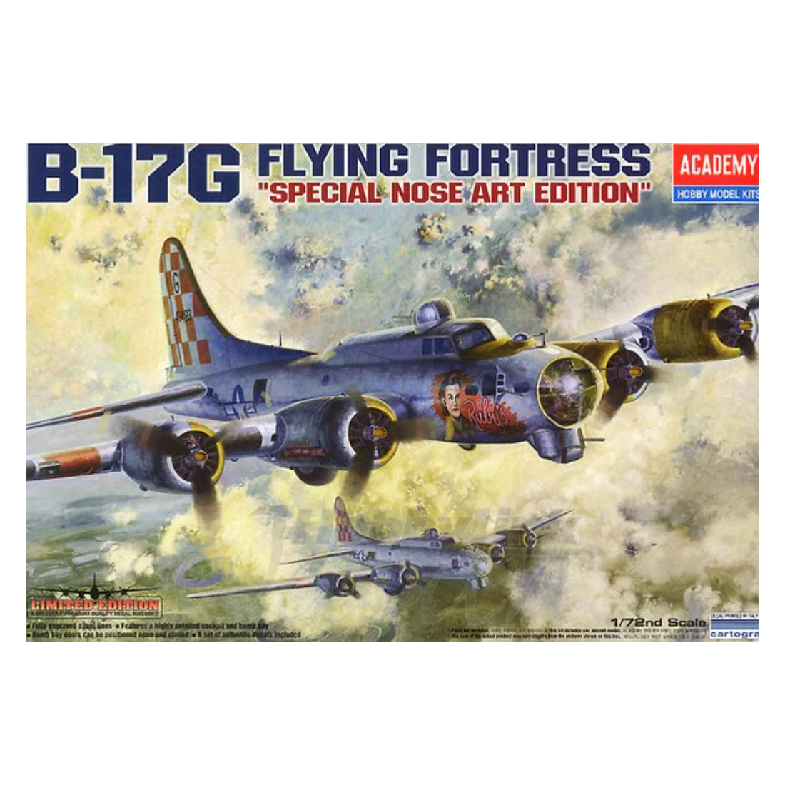 Ce modèle à l’échelle 1:72 représente le majestueux Boeing B-17G Flying Fortress, la version la plus célèbre du bombardier lourd américain de la Seconde Guerre mondiale, ici dans son édition spéciale Nose Art.