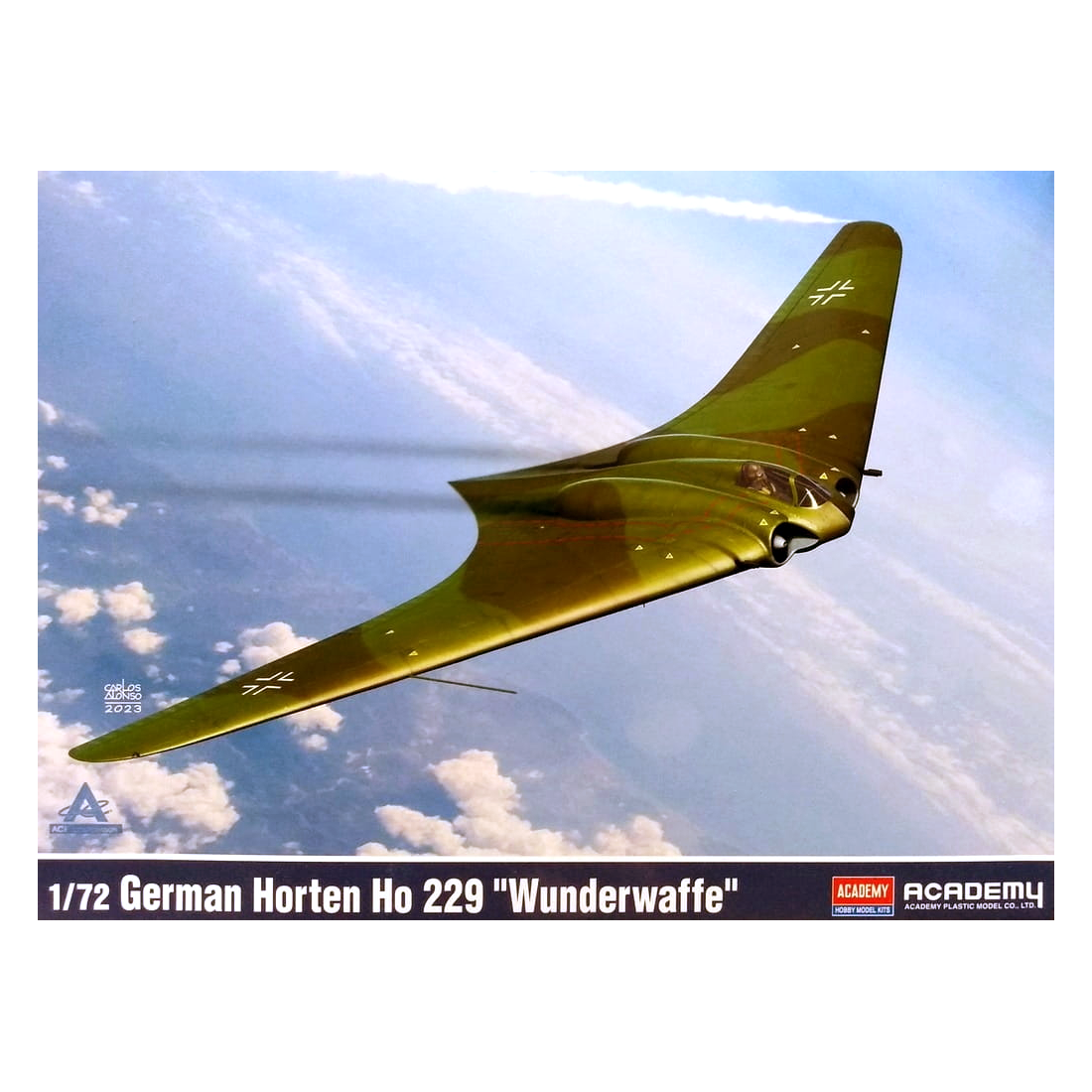 Ce modèle à l’échelle 1:72 représente le révolutionnaire Horten Ho 229, le premier avion de chasse à réaction à aile volante, développé en Allemagne à la fin de la Seconde Guerre mondiale dans le cadre du programme “Wunderwaffe”.
