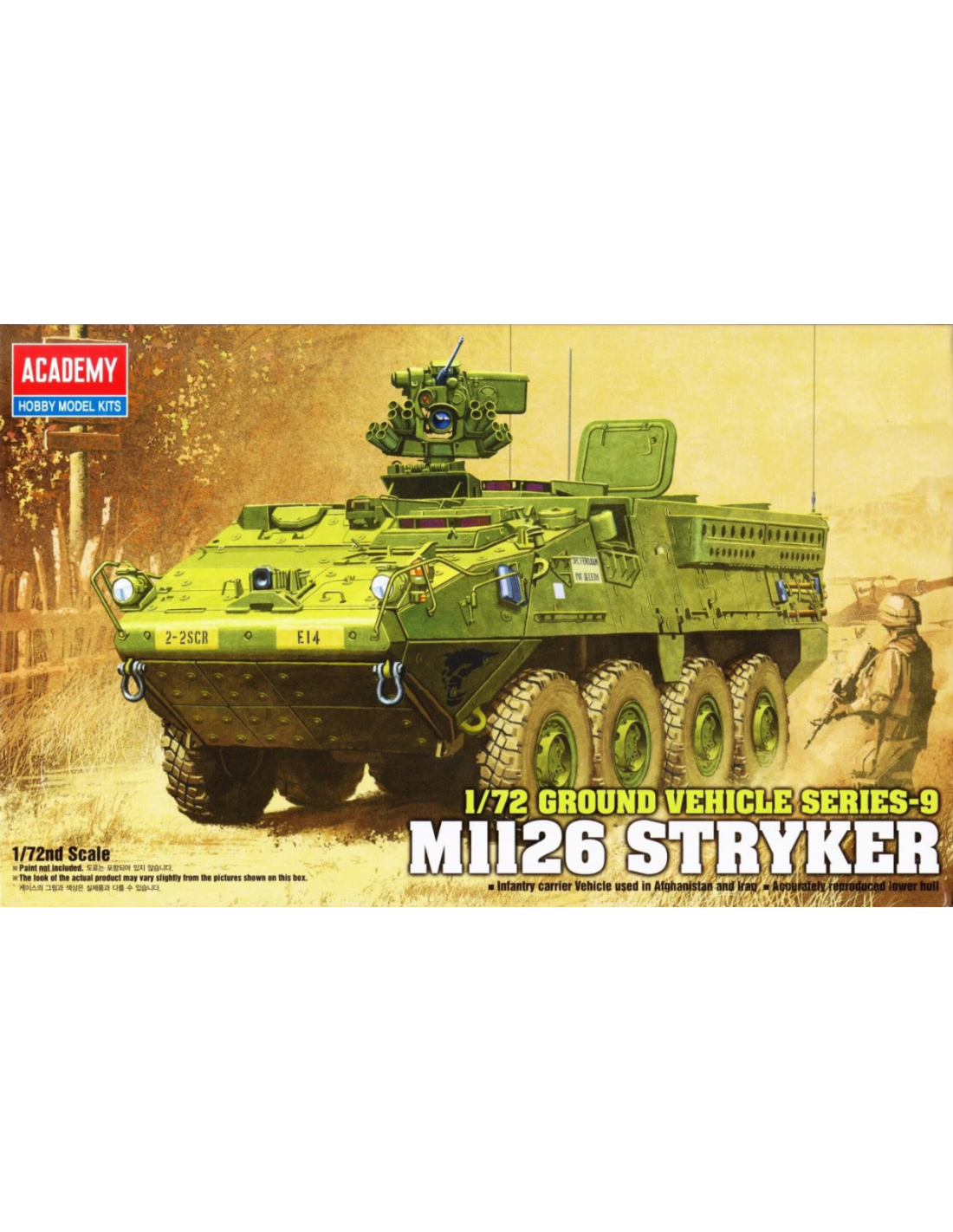 Ce modèle à l’échelle 1:72 représente le M1126 Stryker, le véhicule blindé 8x8 moderne de l’U.S. Army, conçu pour offrir mobilité, protection et puissance de feu dans les opérations contemporaines.