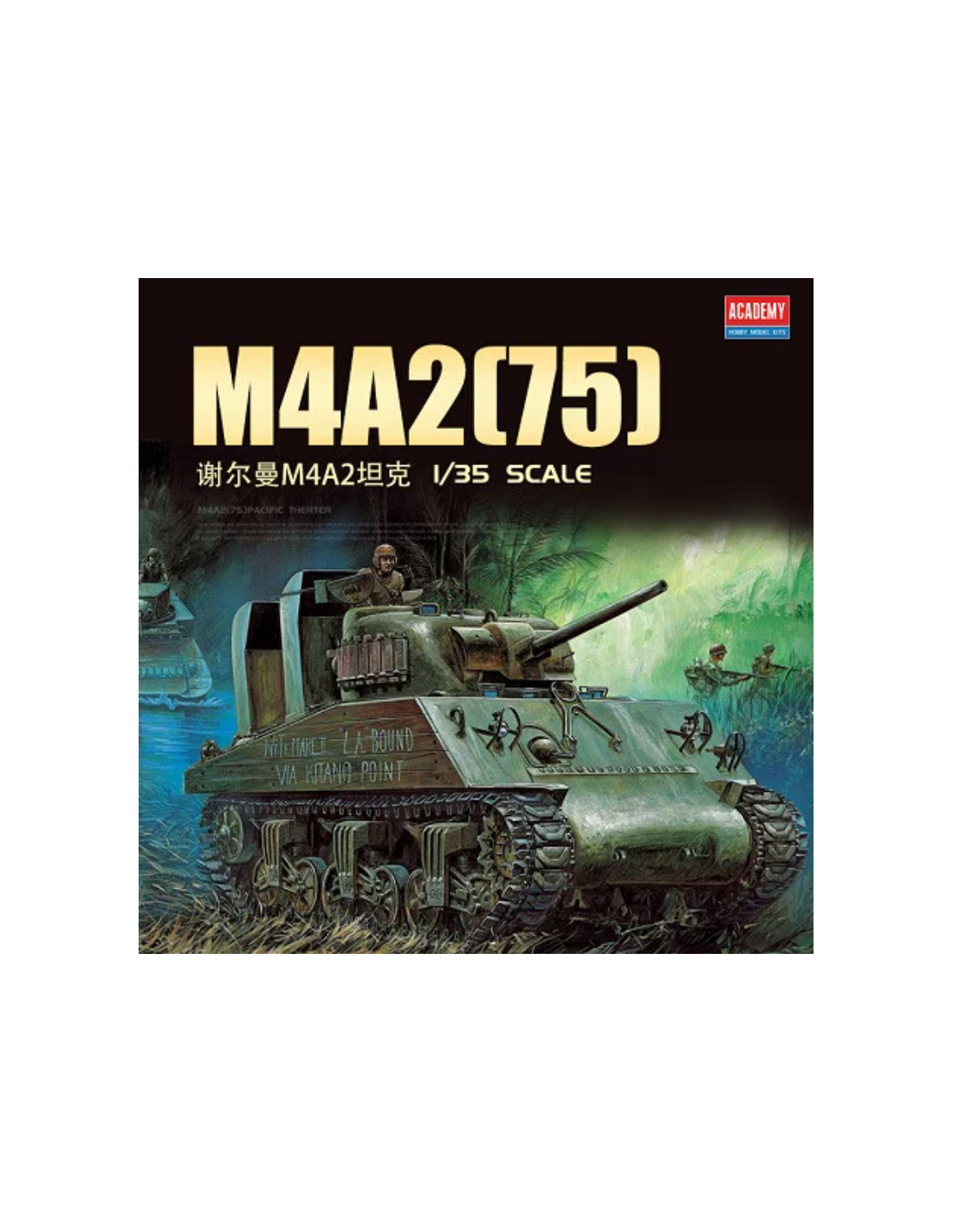 Ce modèle à l’échelle 1:35 représente le M4A2 Sherman Pacific Theater, version du célèbre char moyen américain utilisée par les Marines des États-Unis dans le Pacifique pendant la Seconde Guerre mondiale.