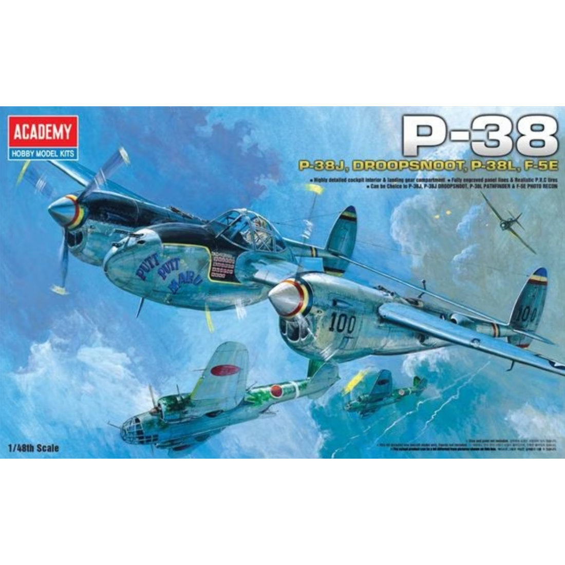 Ce modèle à l’échelle 1:48 reproduit le célèbre P-38 Lightning dans ses versions J, L, Droop Snoot et F-5E, l’un des avions les plus polyvalents de la Seconde Guerre mondiale.