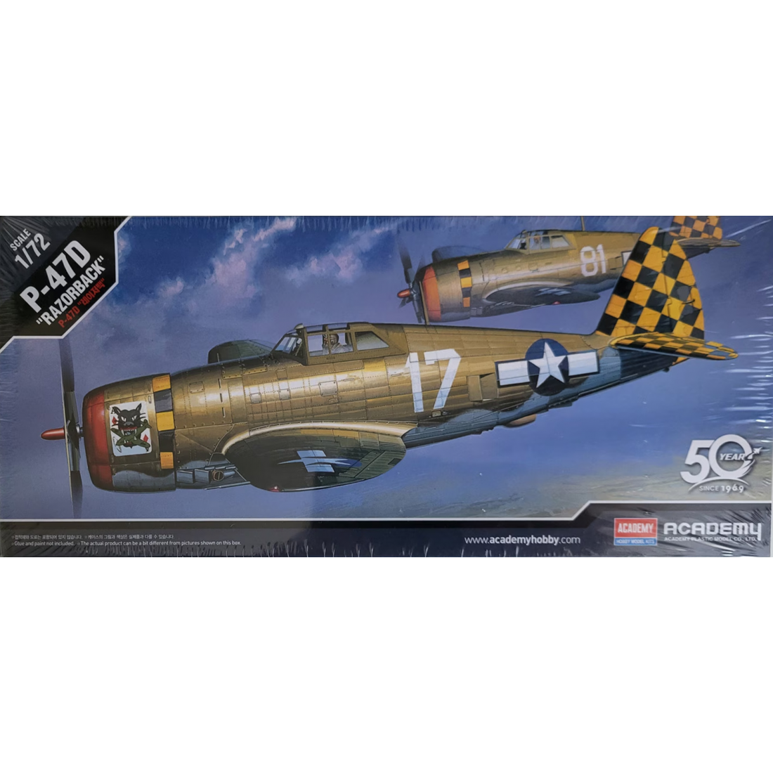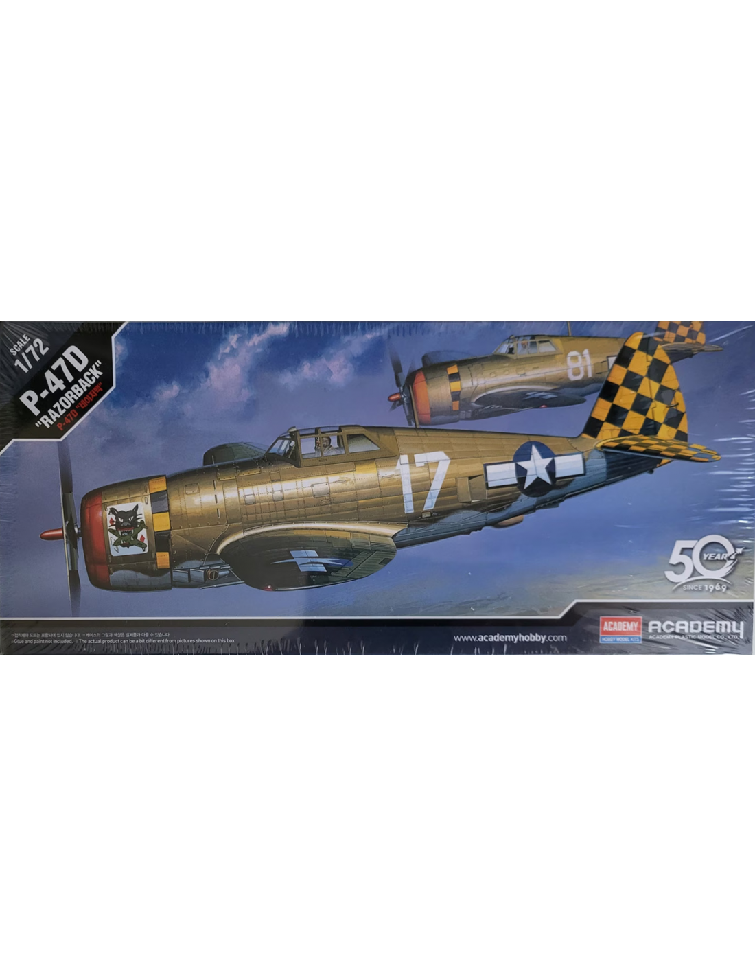 Le modèle comprend des panneaux gravés finement, un cockpit détaillé, des flaps mobiles, un train d’atterrissage réaliste et la caractéristique fuselage arrière relevée “Razor-Back”.
