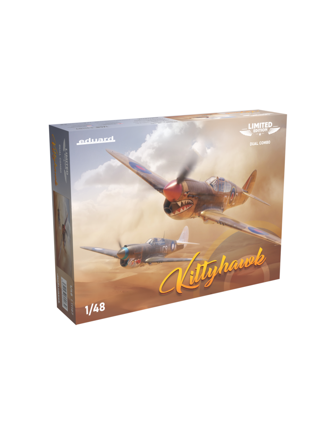 Le kit Eduard Curtiss Kittyhawk Mk.Ia / Mk.IV – Dual Combo 1/48 offre aux modélistes expérimentés un ensemble complet : pièces plastiques de haute qualité, photodécoupes pré‑peintes, masques de peinture et une sélection de 10 décorations historiques utilisées par des unités RAF, RAAF, RNZAF et SAAF.