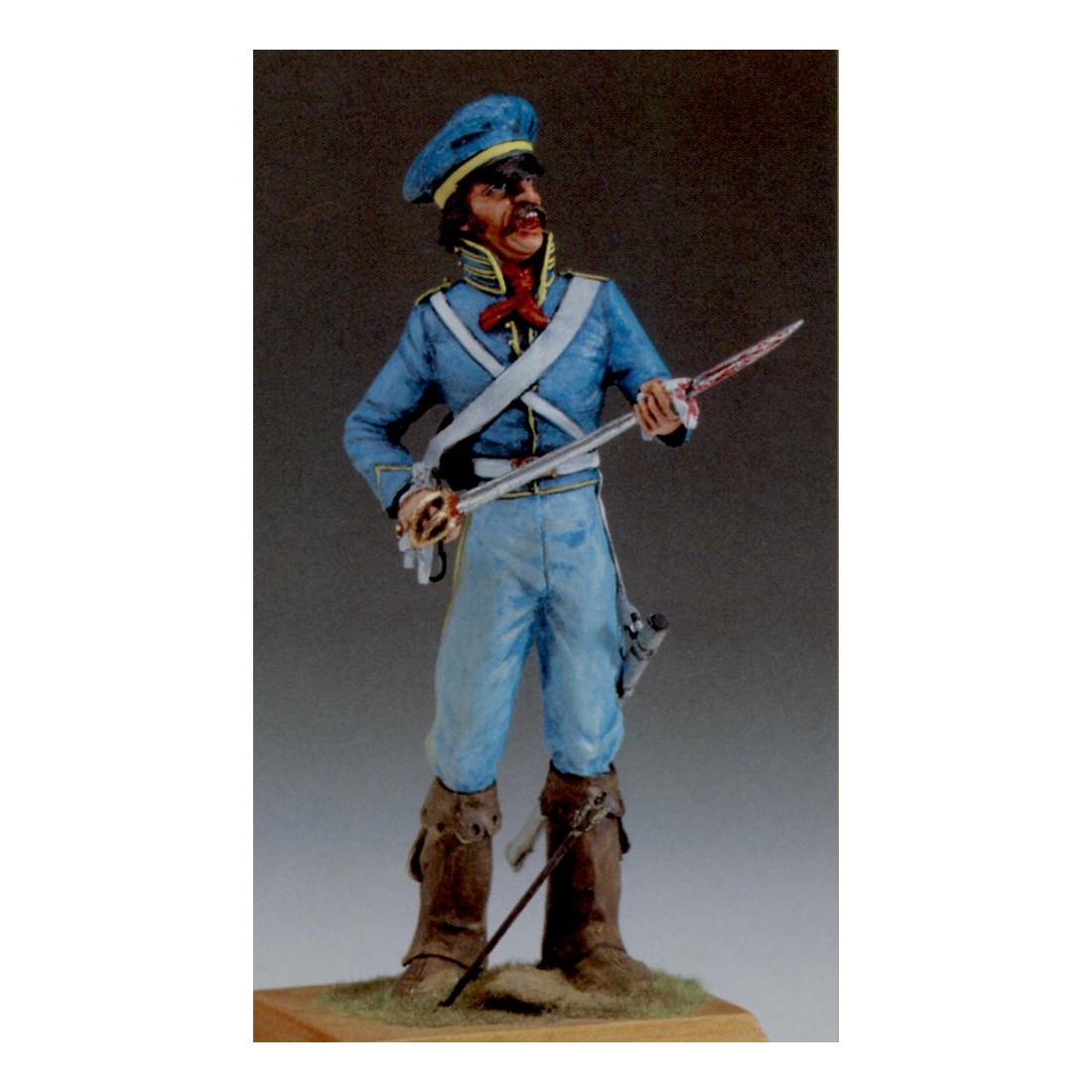 La figurine est à peindre, laissant une totale liberté au maquettiste d’interpréter le sujet selon son propre style et ses techniques, traditionnelles ou avancées. La taille plus grande permet de valoriser au mieux les finitions, les nuances et les détails réalistes, rendant le modèle parfait comme pièce d’exposition ou comme élément de fort impact dans des dioramas historiques.