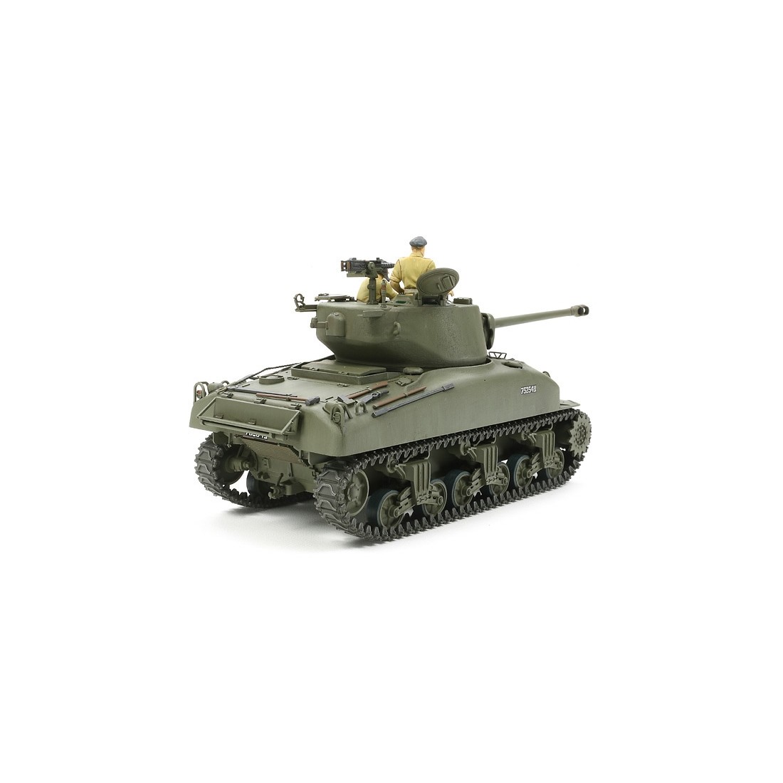 Le Israeli Tank M1 Super Sherman est une évolution du célèbre M4 Sherman, modernisé par l’armée israélienne, ici reproduit par Tamiya à l’échelle 1/35 avec un haut niveau de détail.