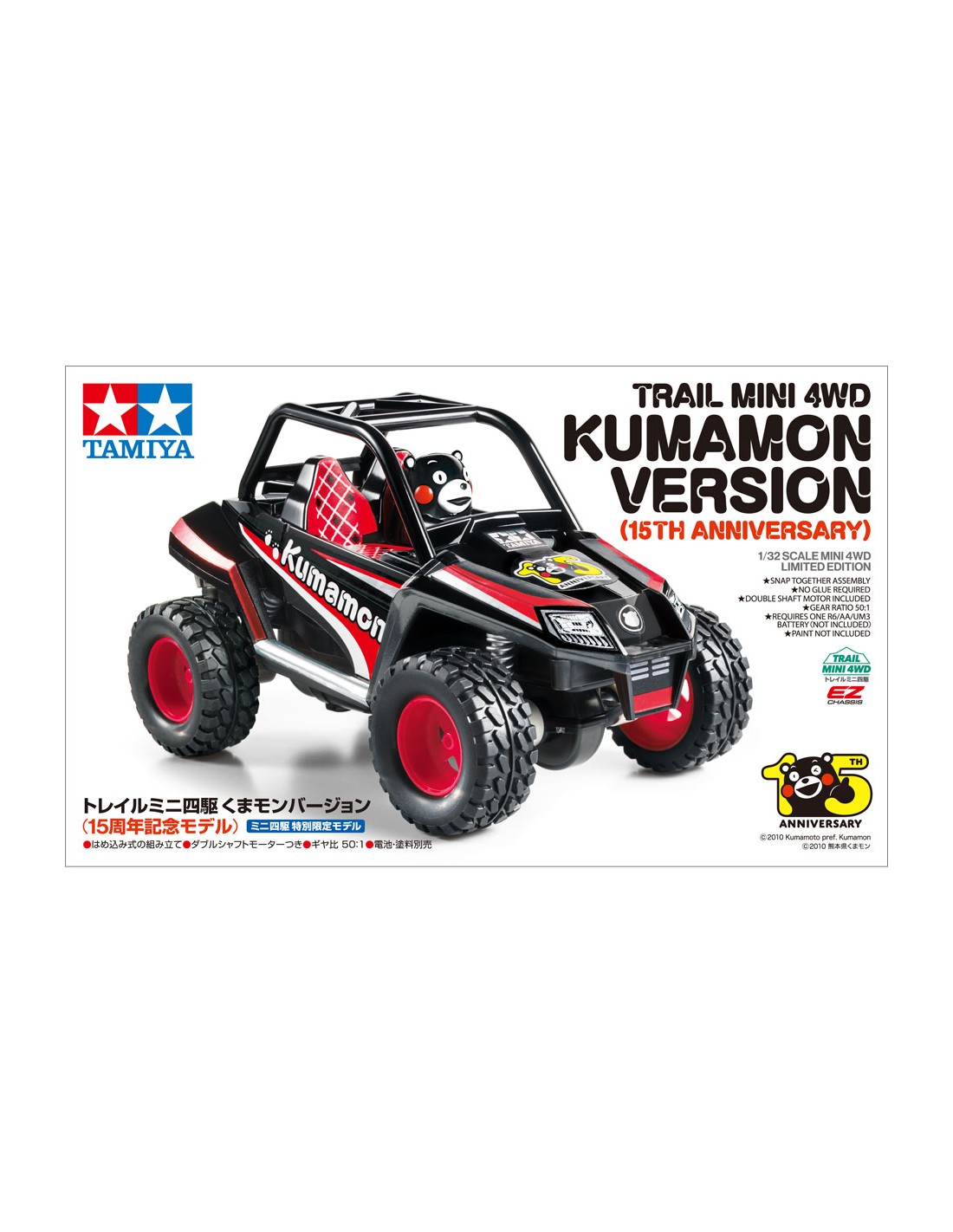 La Mini 4WD Kumamon Version 15th Anniversary est une édition spéciale qui célèbre le 15e anniversaire de Kumamon, la mascotte officielle de la préfecture de Kumamoto.