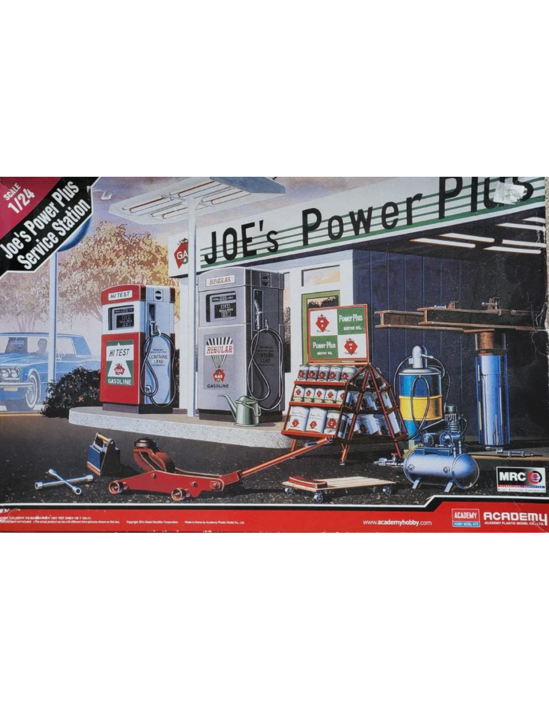 Questo modello in scala 1:24 riproduce con grande realismo la Joe’s Gas Service Station, una tipica stazione di servizio americana degli anni ’50, simbolo dell’epoca d’oro dell’automobilismo.