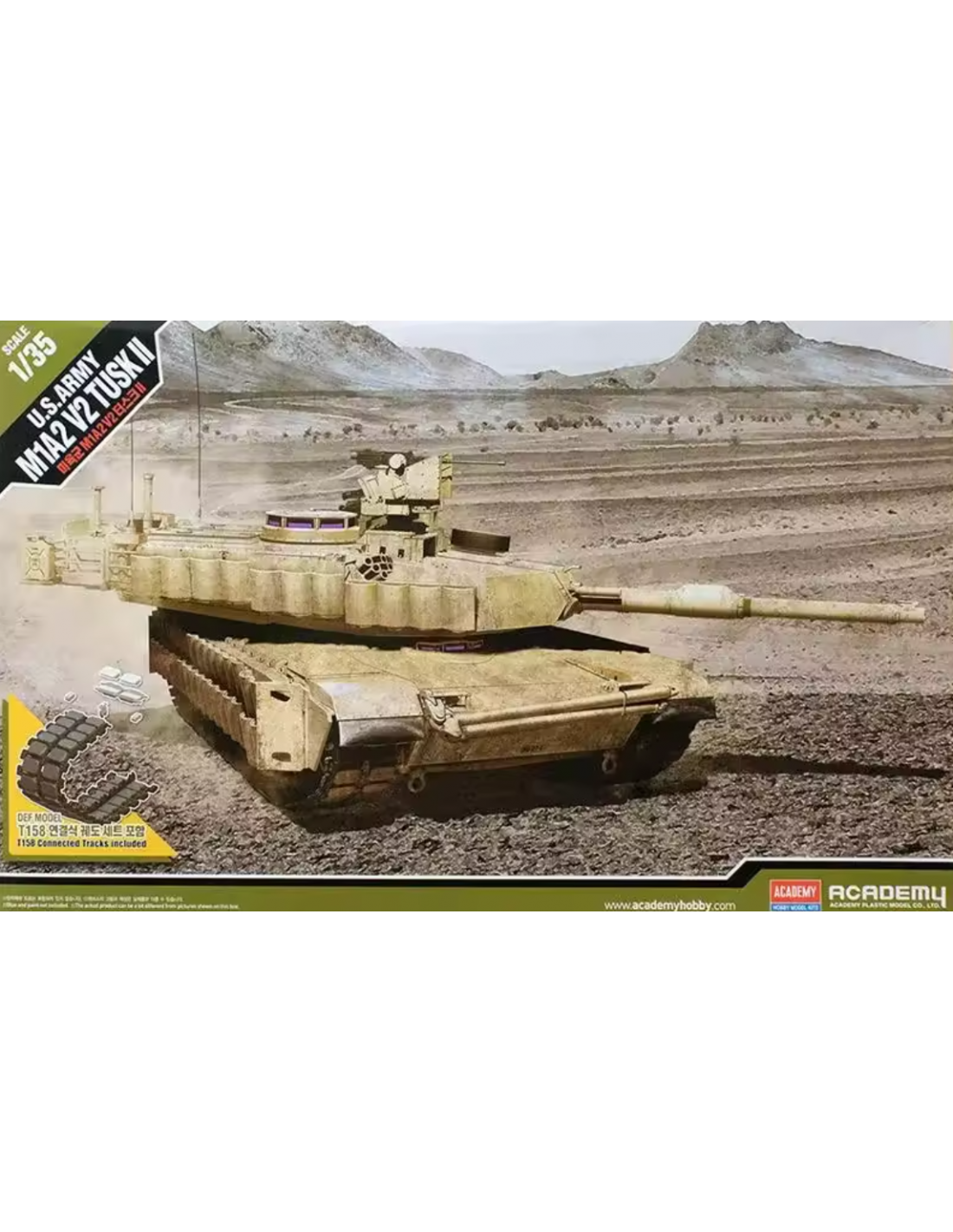 Il modello Academy offre riproduzione estremamente realistica, con pannellature incise, torretta girevole, canna dettagliata, cingoli segmentati, portelli apribili, e un set completo di armi secondarie come M2 Browning, M240 e granate fumogene.