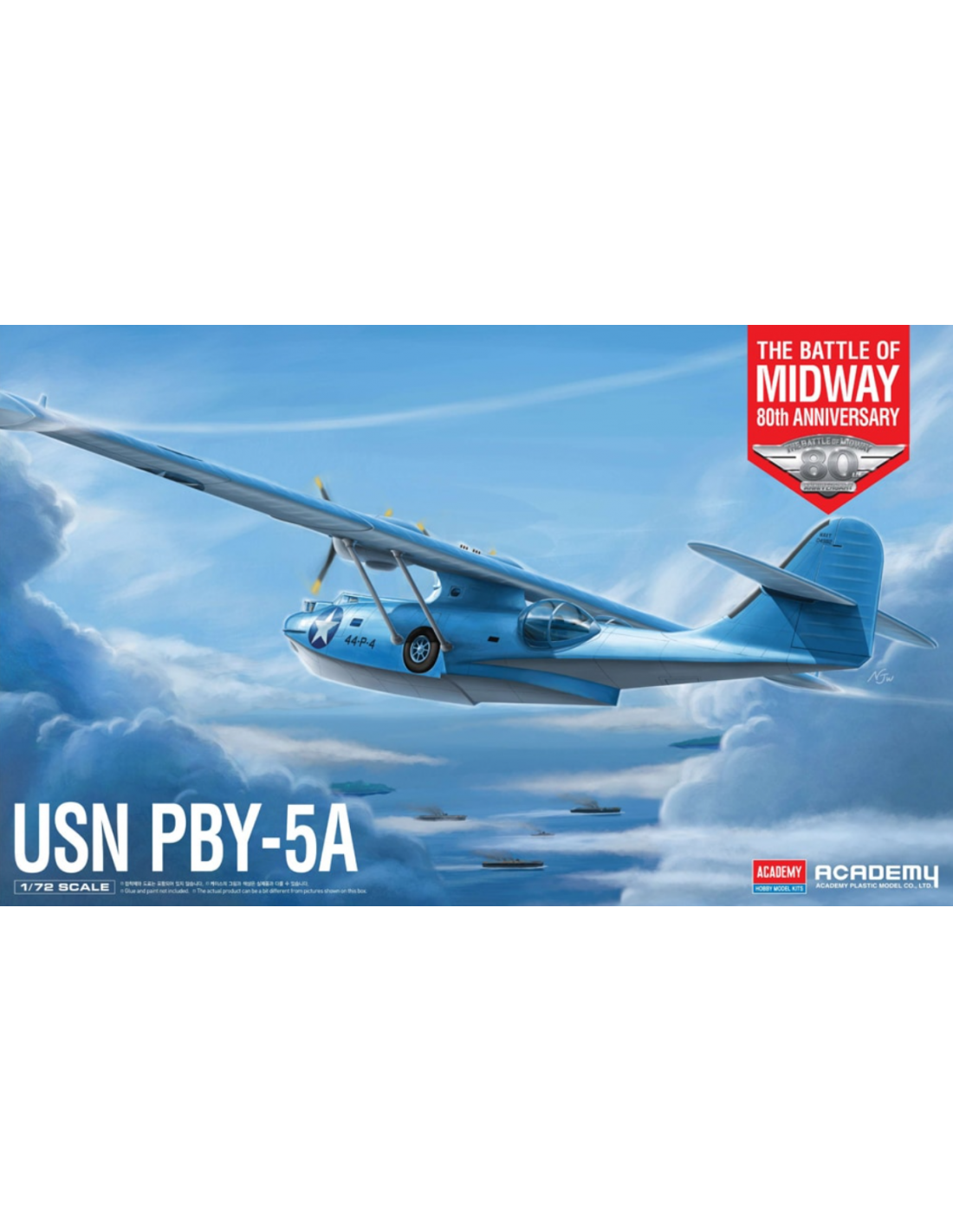 Questo modello in scala 1:72 riproduce il leggendario Consolidated PBY-5A Catalina, nella versione impiegata dalla US Navy durante la Battaglia di Midway (giugno 1942), una delle operazioni più decisive del teatro del Pacifico nella Seconda Guerra Mondiale.
