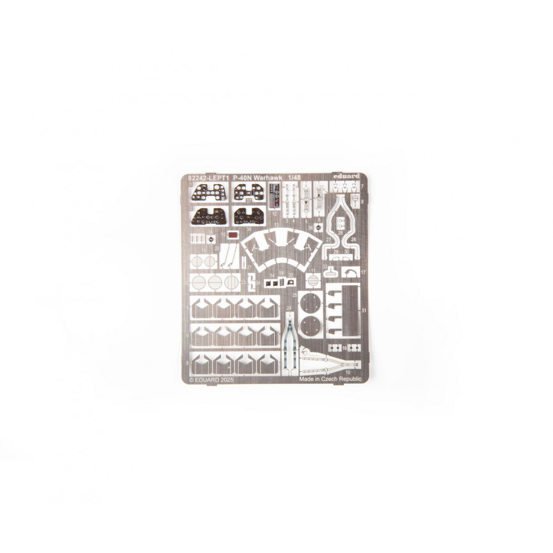 Il kit Eduard P‑40N Warhawk 1/48 ProfiPACK è pensato per modellisti esperti e include parti in plastica di alta qualità, fotoincisioni precolorate, maschere per la verniciatura, e 6 opzioni di livrea storiche che permettono di realizzare versioni operative sia nel teatro del Pacifico sia in Cina.