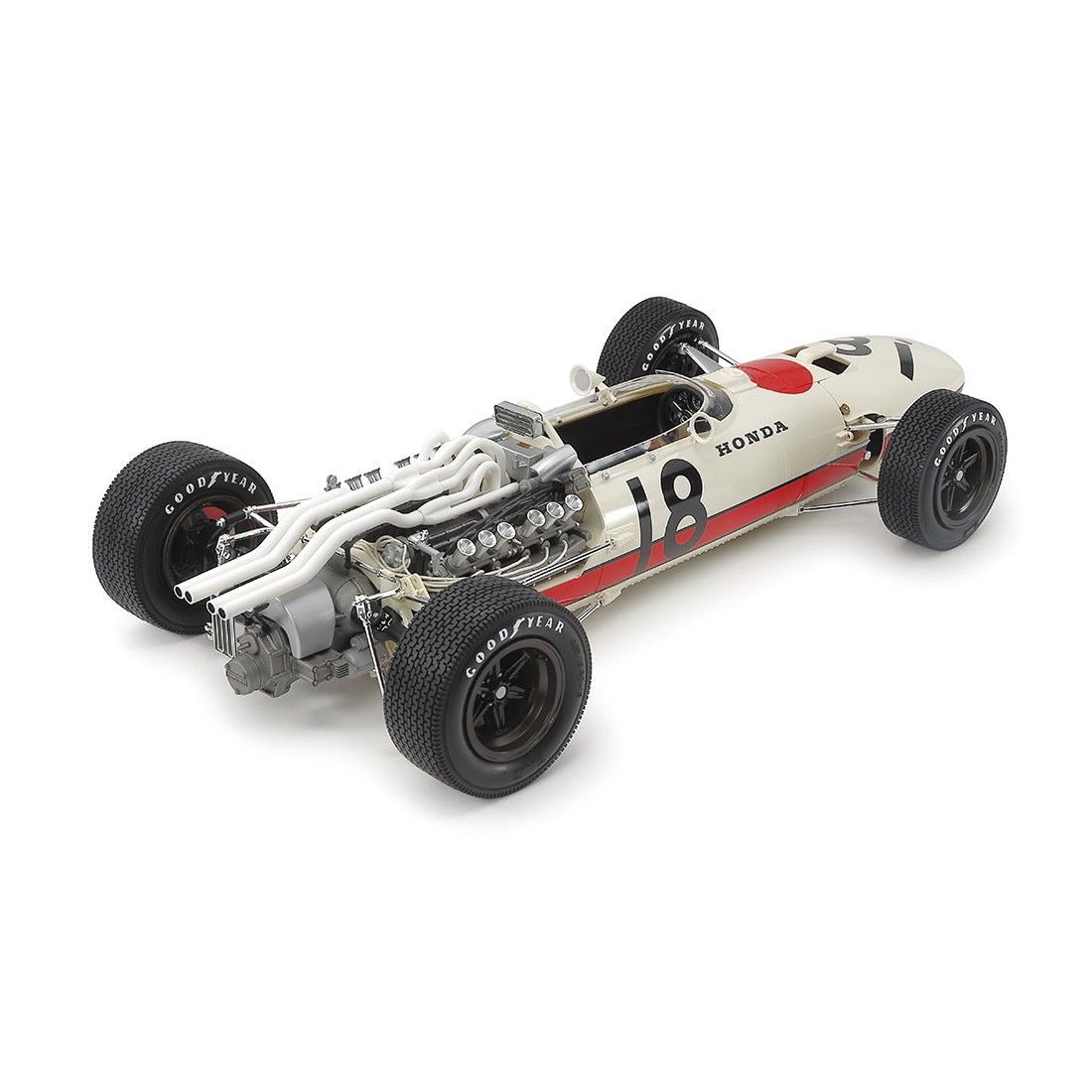 La Honda RA273 è una monoposto di Formula 1 del 1966, simbolo dell’ingresso di Honda nella massima categoria con una vettura completamente progettata internamente, qui riprodotta da Tamiya in scala 1:12 con un livello di dettaglio straordinario.